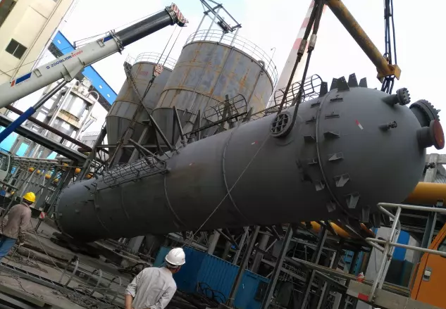 河南龍宇煤化工二期煤氣化裝置第二臺WHG爐技改工程核心設備-----激冷氣冷卻塔制造順利按時完工,按時交貨,最后順利吊裝到位。激冷氣冷卻塔殼體重126t,直徑3.6m,高22m,坐落在氣化裝置1-2軸南側2.5m處+0.1m標高。